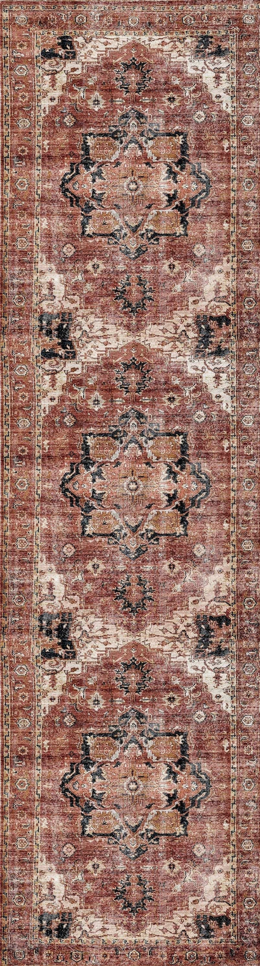 Distressed Vintage Cezanne Terracotta Runner - VITAL 2244-01
